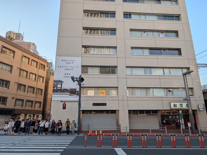 言問通り沿いを北側に移動して、閉鎖された東口改札跡地を見た様子です。