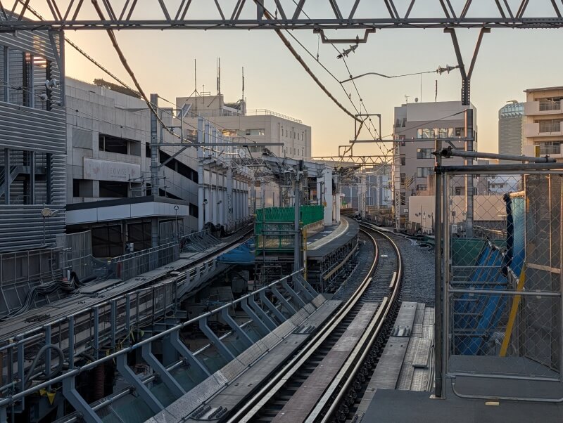 「とうきょうスカイツリー駅」の駅舎の北側の敷地を見た様子です。駅舎の北側ホームが、今回使用開始となった、新下り線ホームとなります。