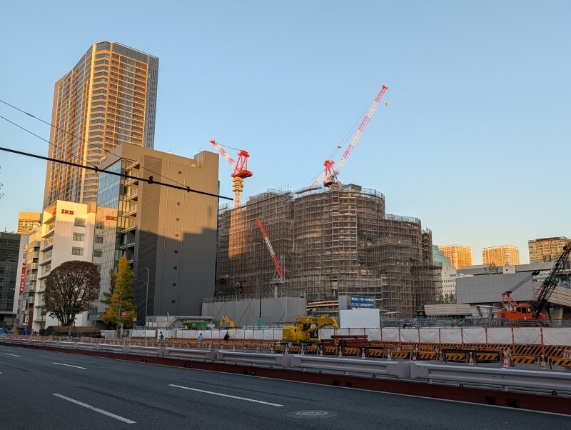 どこに出来るのか謎でしたが、「MoN Takanawa: The Museum of Narratives」(モン タカナワ: ザ ミュージアム オブ ナラティブズ)の西側、「PMO高輪ゲートウェイ」の南側で建物が施工されていました。おそらく、こちらの施工中の建物になるのだと思います。都市計画の素案には、こちらの建物は存在しませんでした。