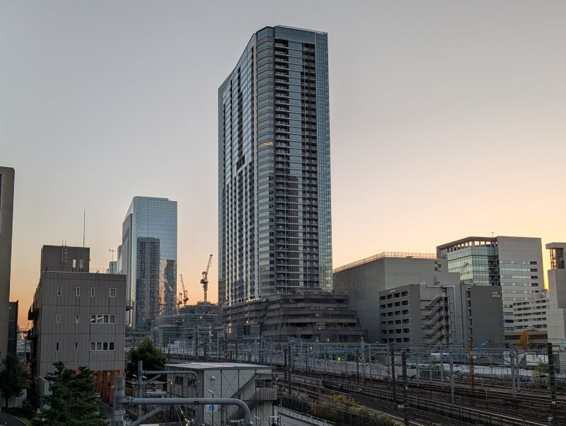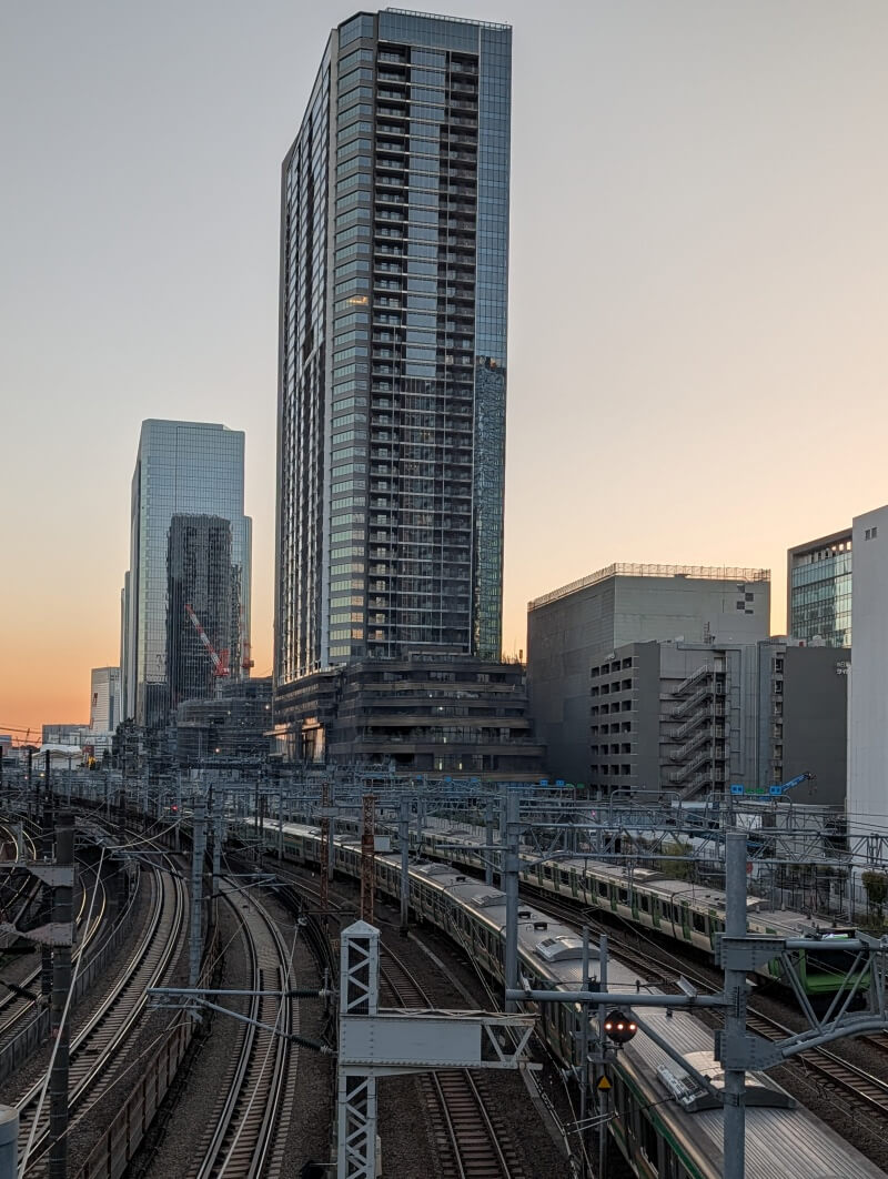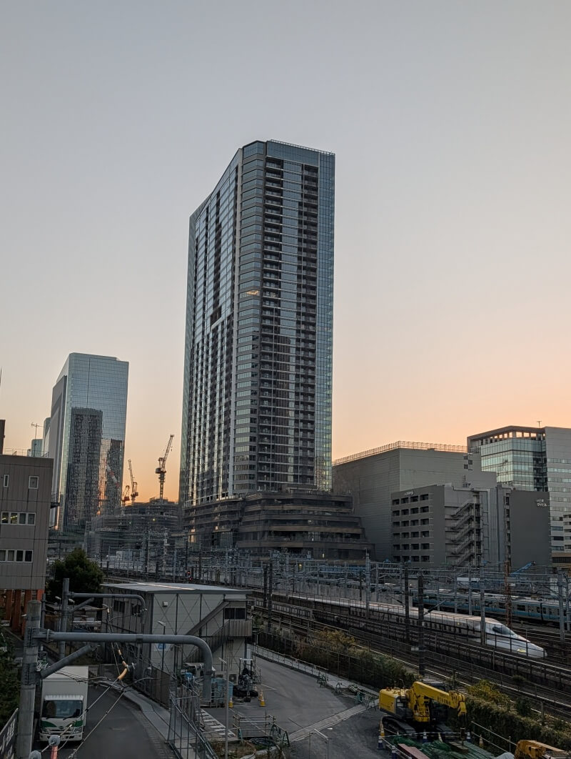 芝浦側に移動して、「高輪ゲートウェイシティレジデンス」を見た様子です。
