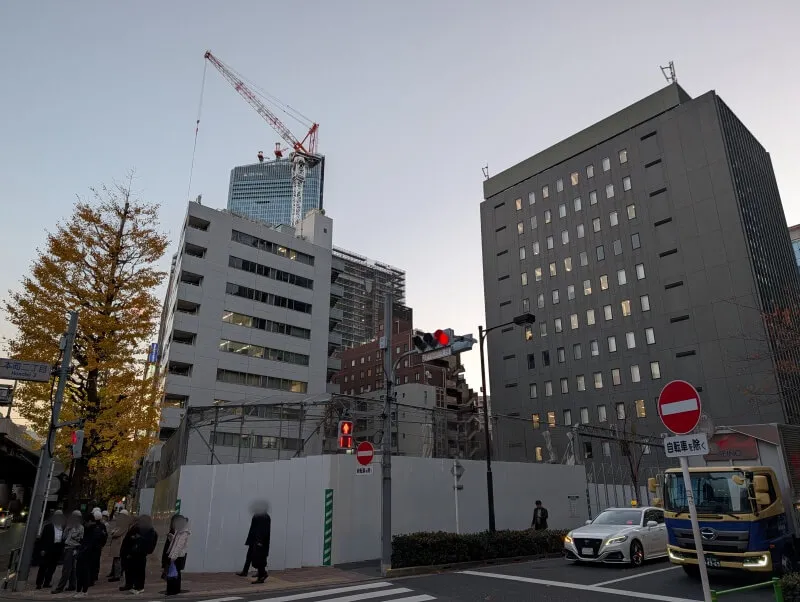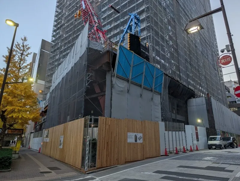 昭和通り沿いを南側に移動して、施行中の建物を見た様子です。