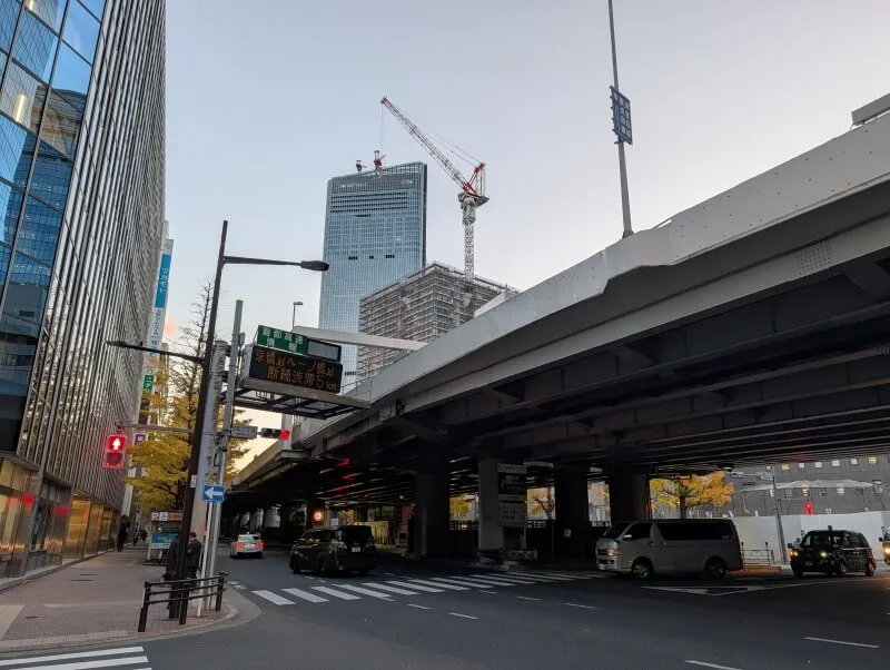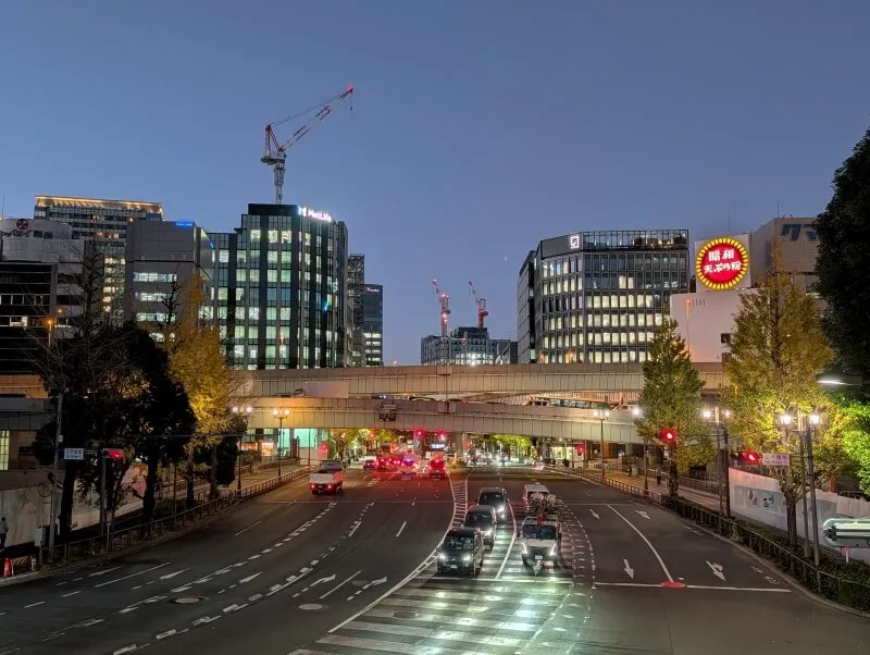 最後に、日没の時間前後で、江戸橋南詰歩道橋の上から、昭和通りの北側を見た様子です。
