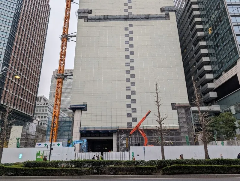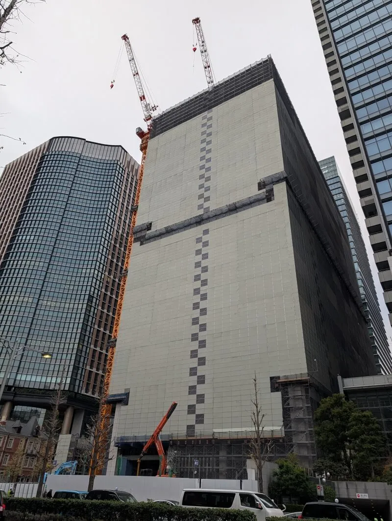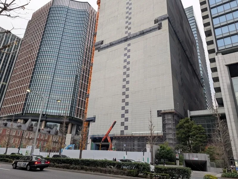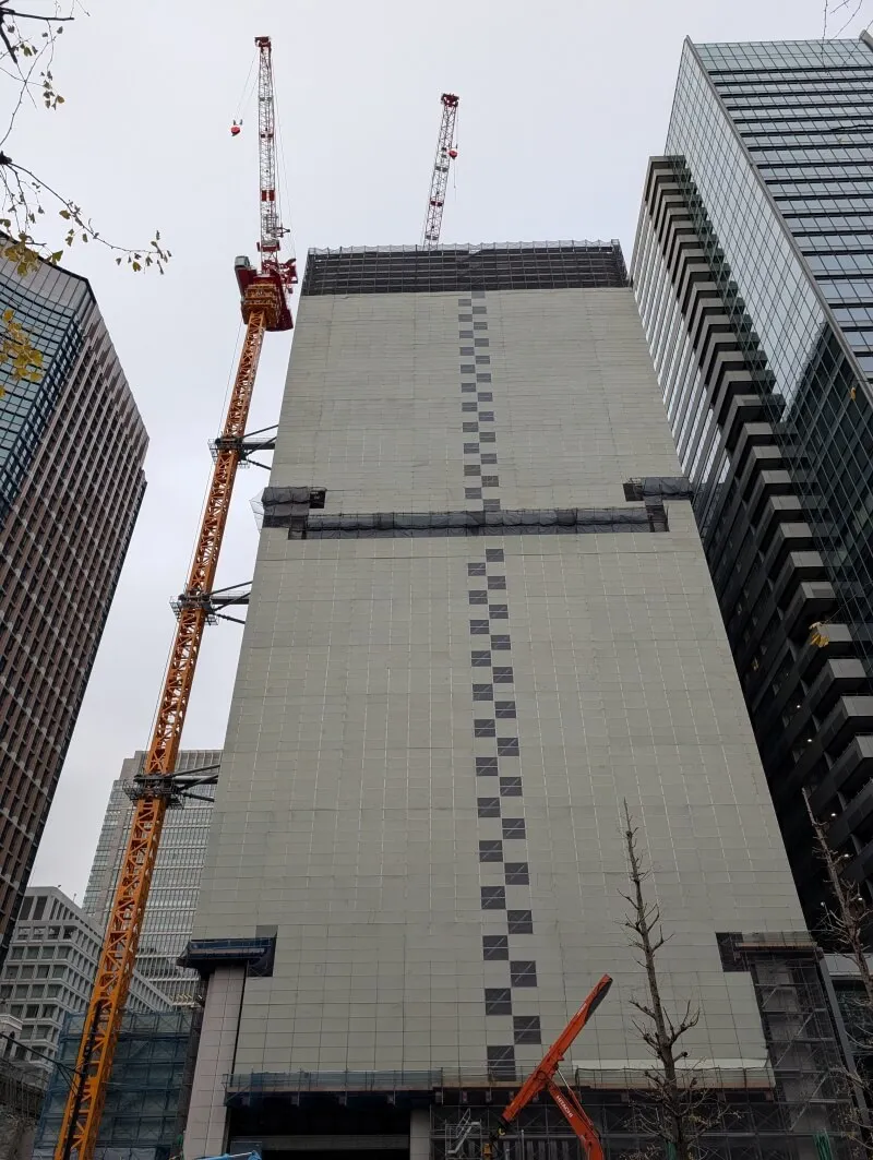 三菱UFJ銀行本館建替の、28階159m「(仮称)M計画」の様子です。旧三菱UFJ銀行本館は全体的に解体工事用のカバーで覆われており、解体工事が進んでいました。