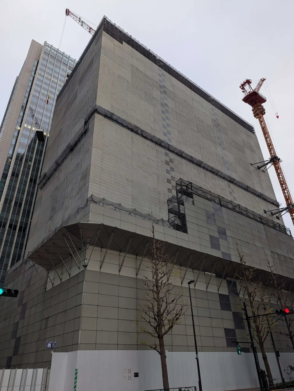北西側に移動して、「JPタワー」の西側から、解体工事中の躯体を見た様子です。