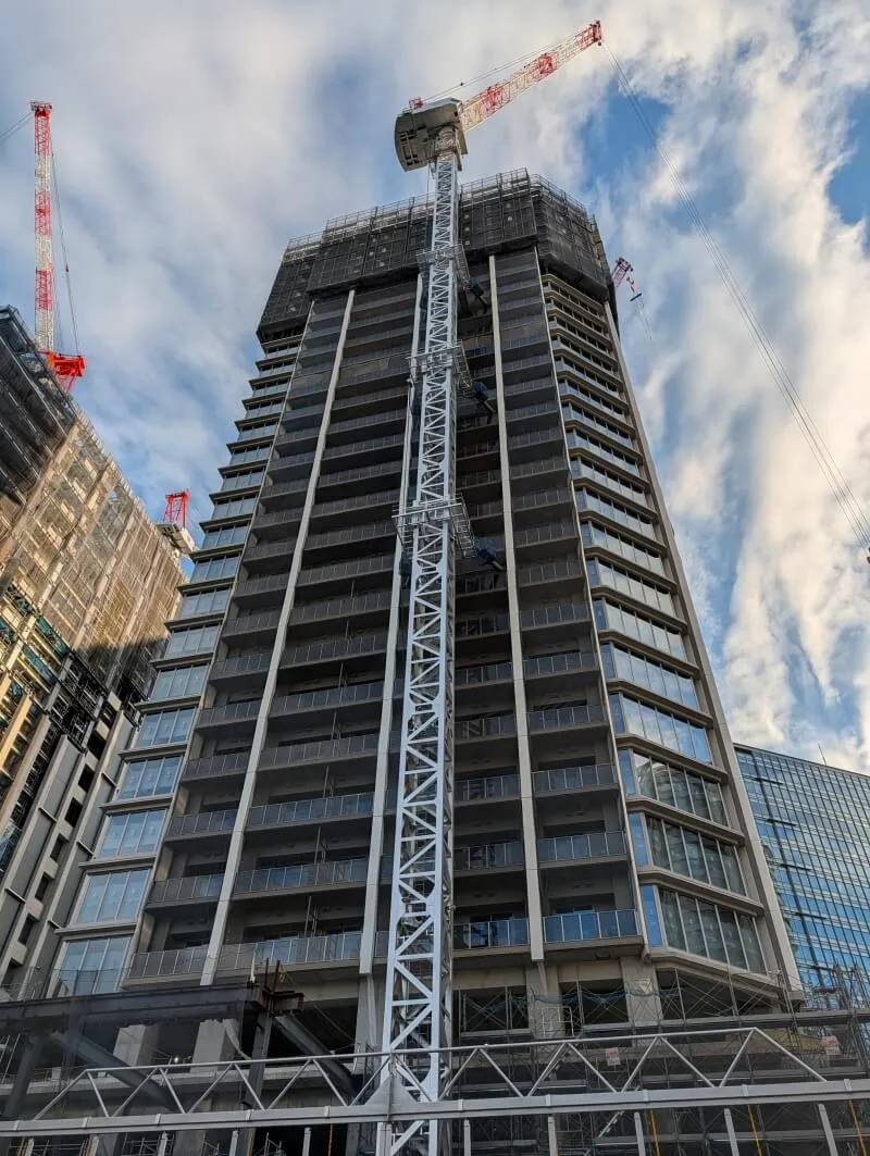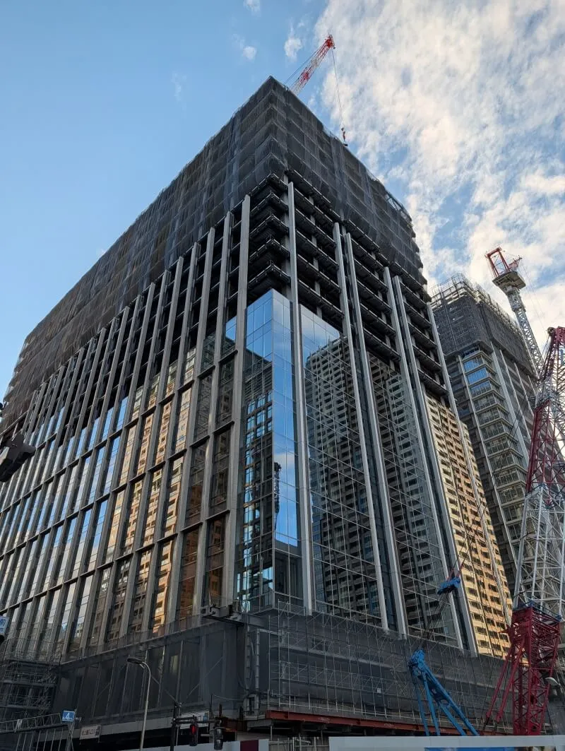 施工中の、「ブランズタワー大崎」を見上げた様子です。