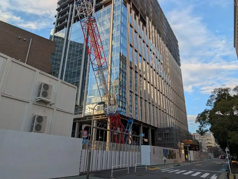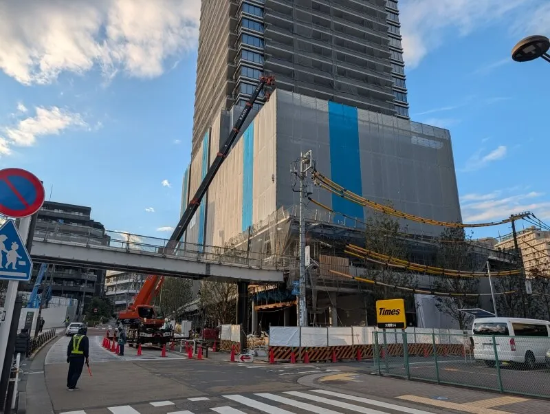 「パークタワーグランスカイ」付近から、業務棟の施工状況を見た様子です。