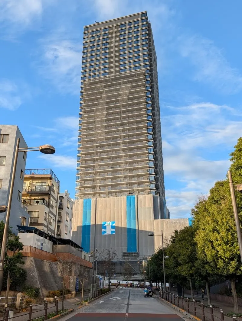 居木神社傍で再開発中の、37階143m「大崎駅西口F南地区第一種市街地再開発事業」の様子です。こちらは、公式サイトが開設されており、「(仮称)大崎タワーレジデンスプロジェクト」という名称になっていました。ドメイン名が、sumitomo-latour.jp ですので、「ラ・トゥール」シリーズの賃貸住宅でしょうか?