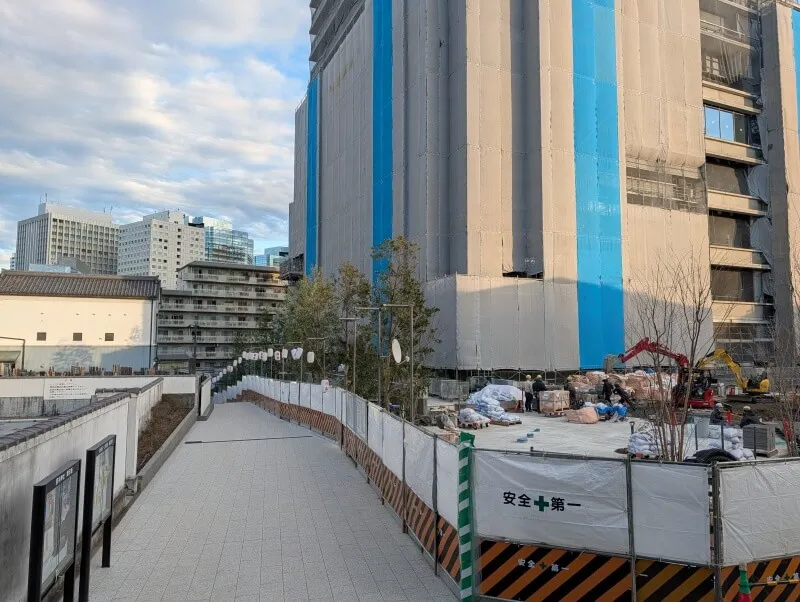 敷地の東側低層階を見た様子です。工事用の白いフラットパネルが、工事用の柵に変わっていました。