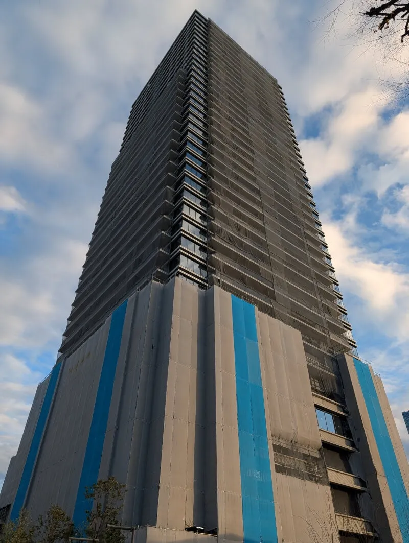 「ThinkPark Tower」の西側から、建物を見た様子です。