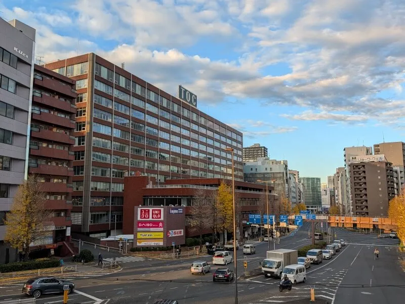 建物の周辺には首都高速道路が走っているので、なかなか撮影に良い場所が見つかりませんでした。建物西側の旧中原街道側から、建物の低層階を見た様子です。