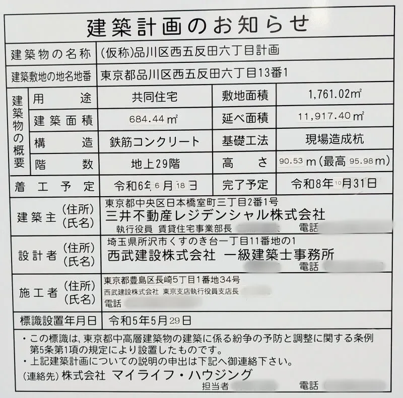 「ホテルルートイン五反田」の跡地で施工中の、29階96m「(仮称)品川区西五反田六丁目計画」の様子です。久しぶりこちらを見にきました。