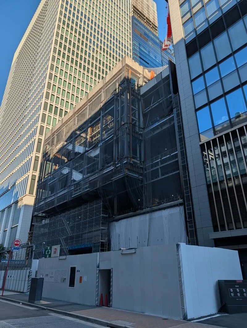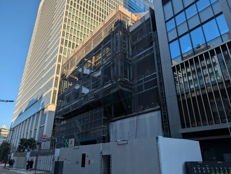 建物の北西側の大門交差点付近から、施行中の「世界貿易センタービルディング 本館」の低層階を見た様子です。