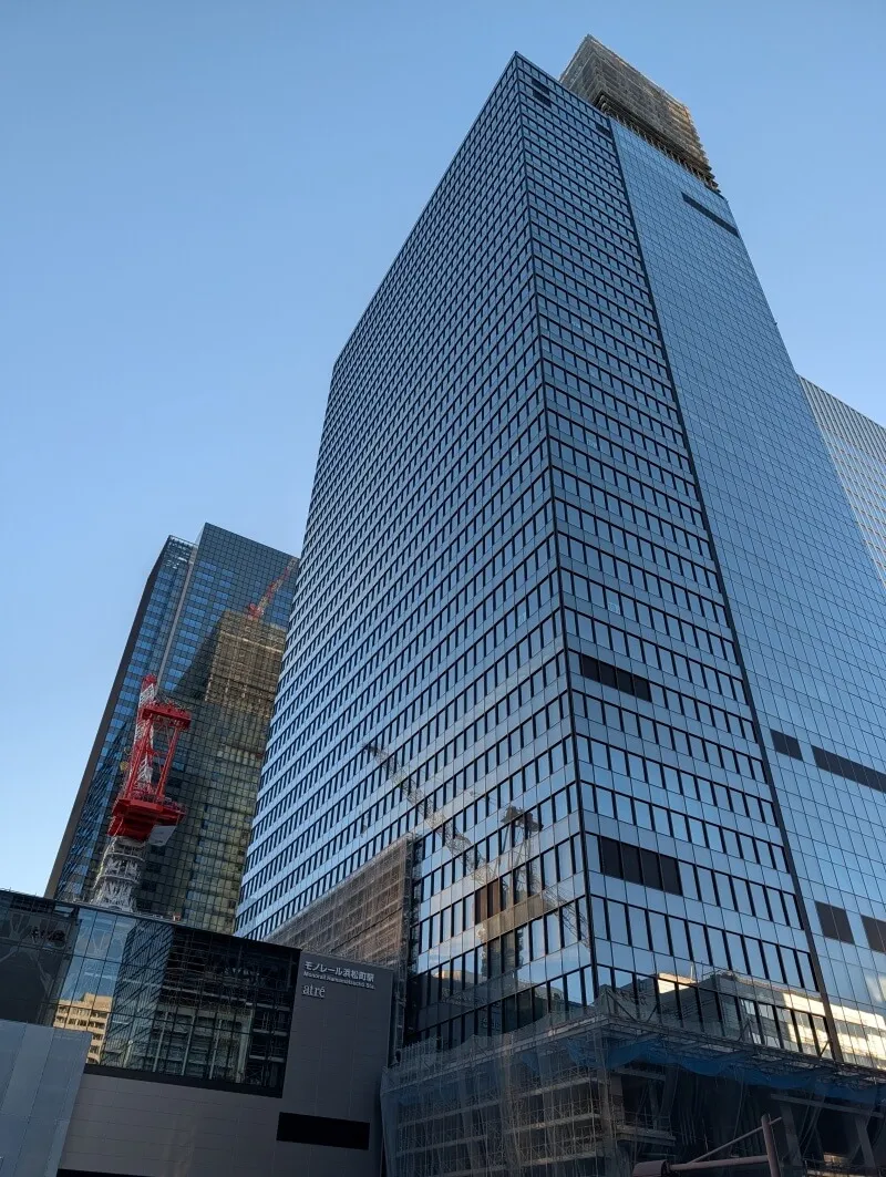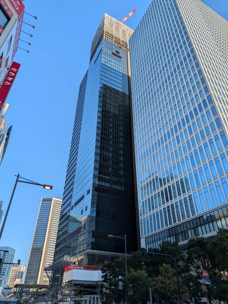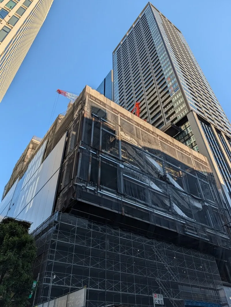 建物高層階を撮影した様子です。建物高層階のホテル部分、「ラッフルズ東京」が入る階付近を施工中でした。