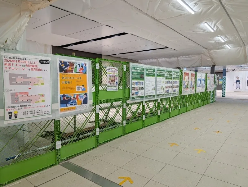 JR浜松町駅は、北口橋上駅舎新設工事に伴い、1月10日から新設トイレ・エスカレーターの使用が開始されます。また、ホーム北側にあったエスカレーターは、使用出来なくなります。