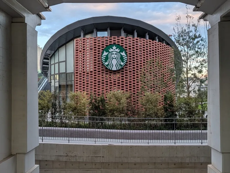 同じく、東急大井町線の高架の下から、「TRACKS PARK」を見た様子です。スターバックスのロゴが見えていました。