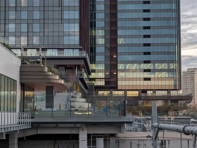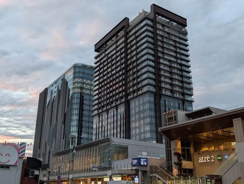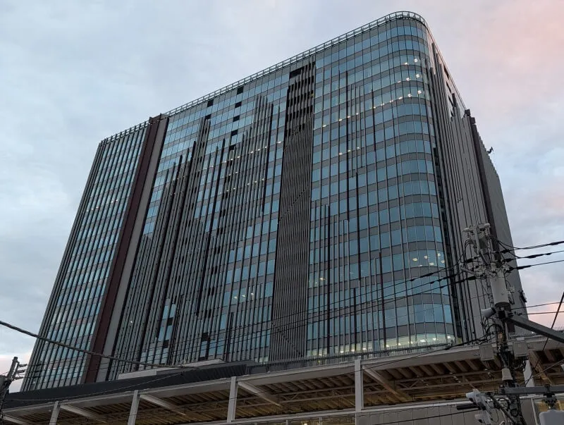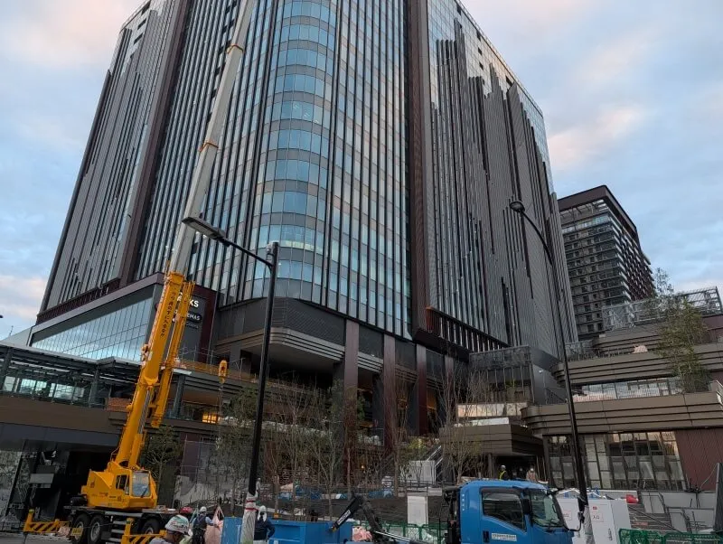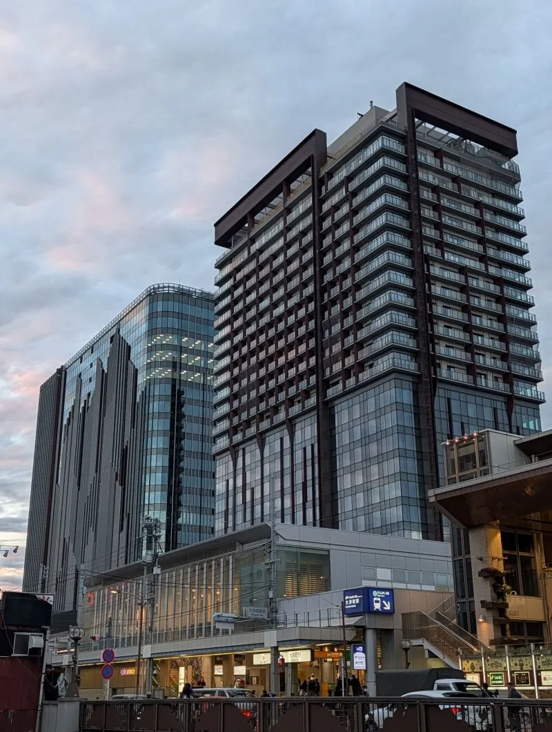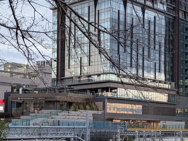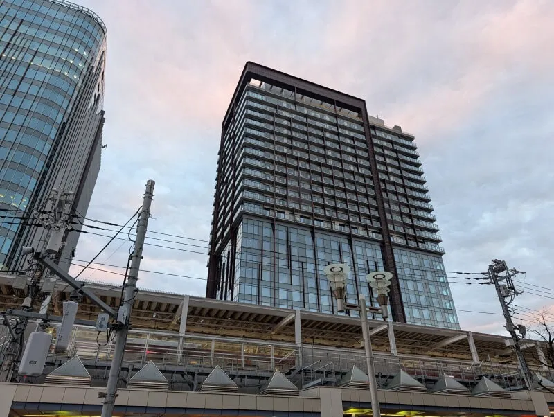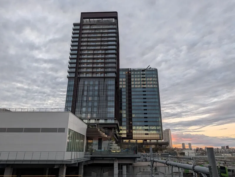 ホテル・住宅棟の、「OIMACHI TRACKS HOTEL & RESIDENCE TOWER」側を見た様子です。