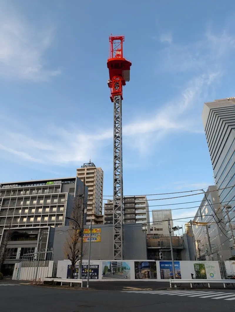レインボーブリッジの近くで建設中の、34階118m「CITY TOWER THE RAINBOW」((仮称)海岸3丁目新築工事)の様子です。