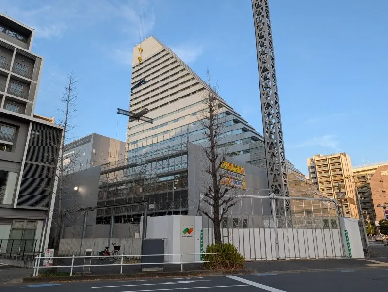 旧海岸通り沿いの「ブリジストン芝浦ビル」跡地で建設中の、34階117m「シティタワー東京田町」の様子です。