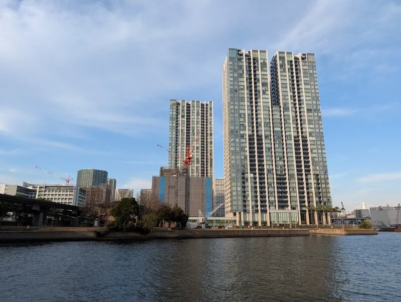 天王洲大橋を渡る途中で、施工中の建物を見た様子です。