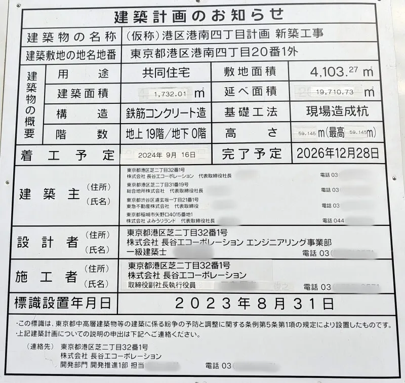 現地に掲示されていた、建築計画のお知らせです。