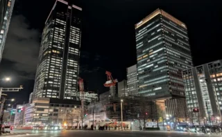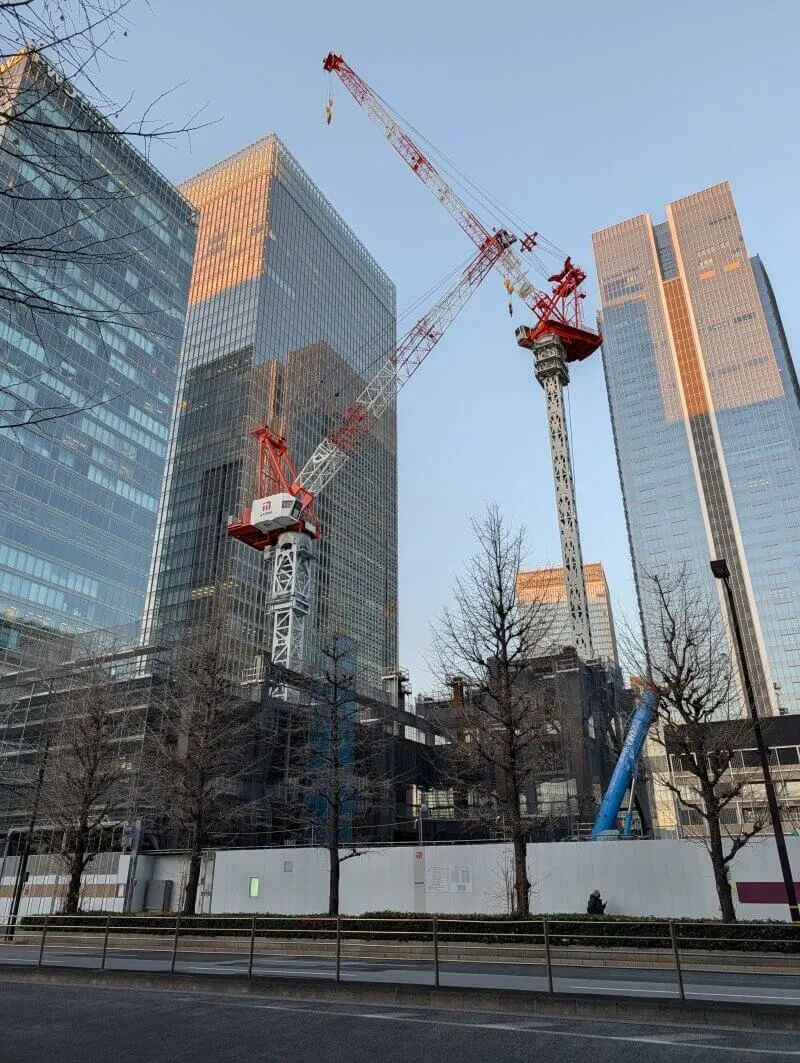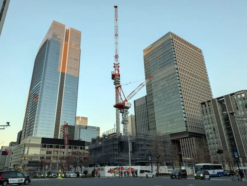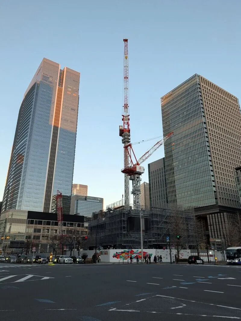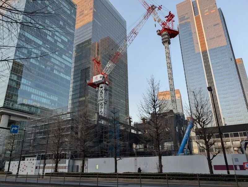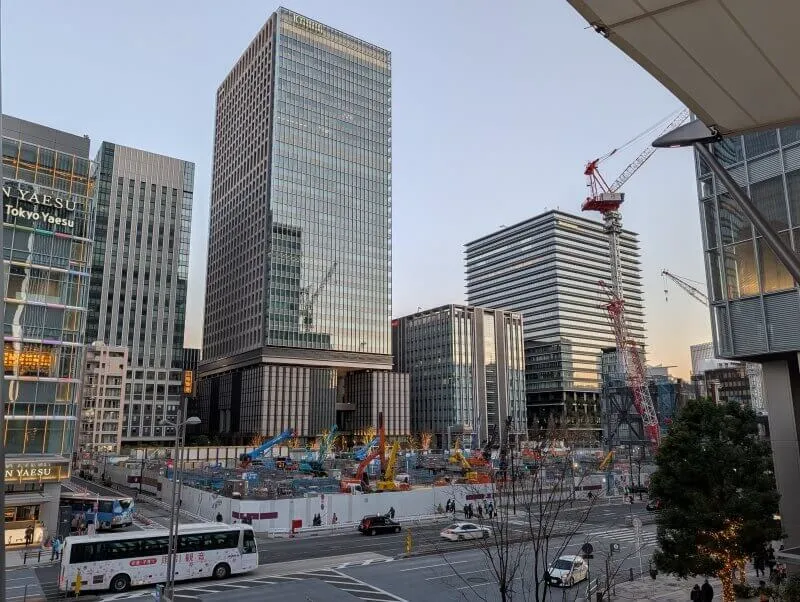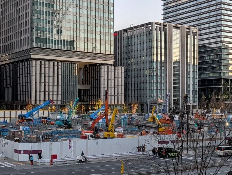 東京駅八重洲口のグランルーフから、再開発の敷地を見た様子です。