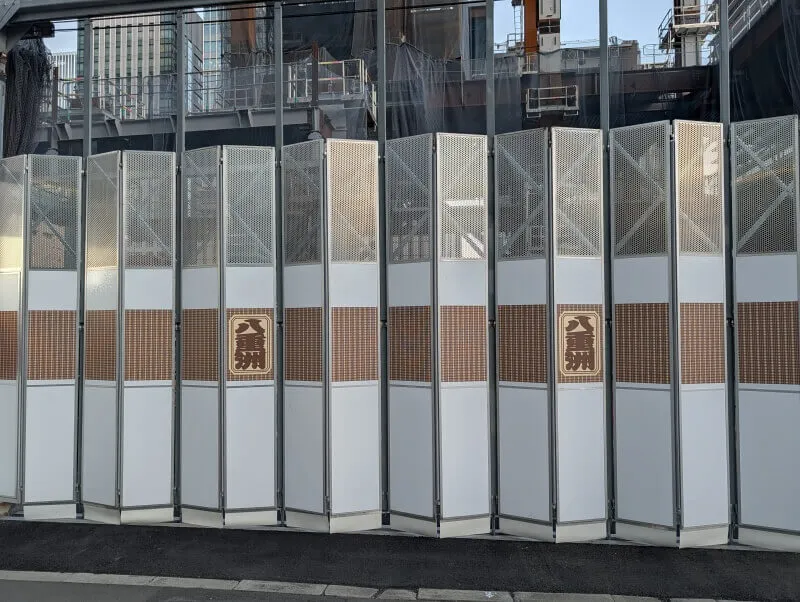 再開発の敷地のゲートには、素敵な模様と「八重洲」と書かれていました。