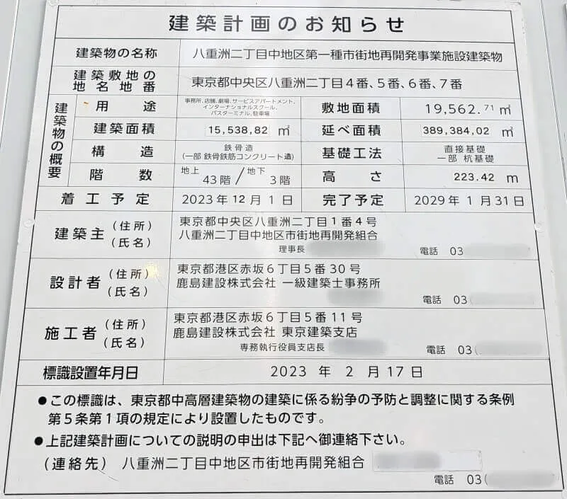 「東京ミッドタウン八重洲」の南側で行われている、43階223m「八重洲二丁目中地区第一種市街地再開発事業」の様子です。