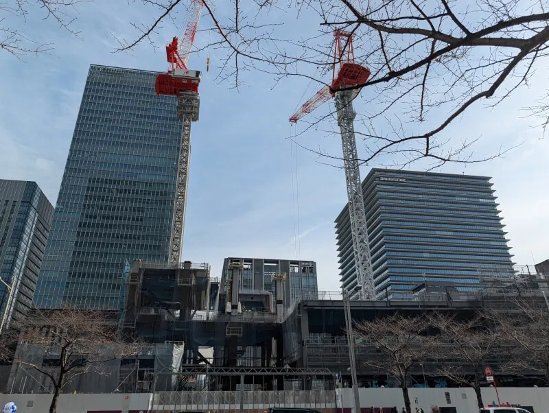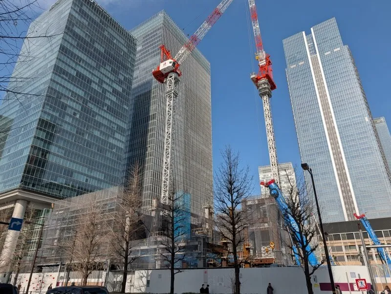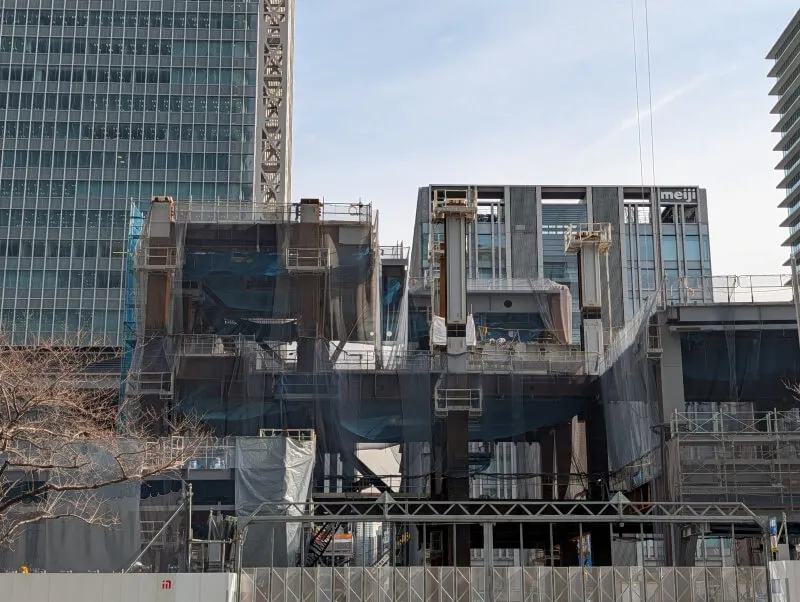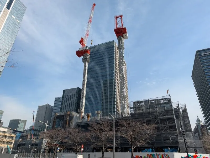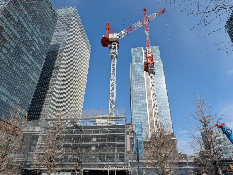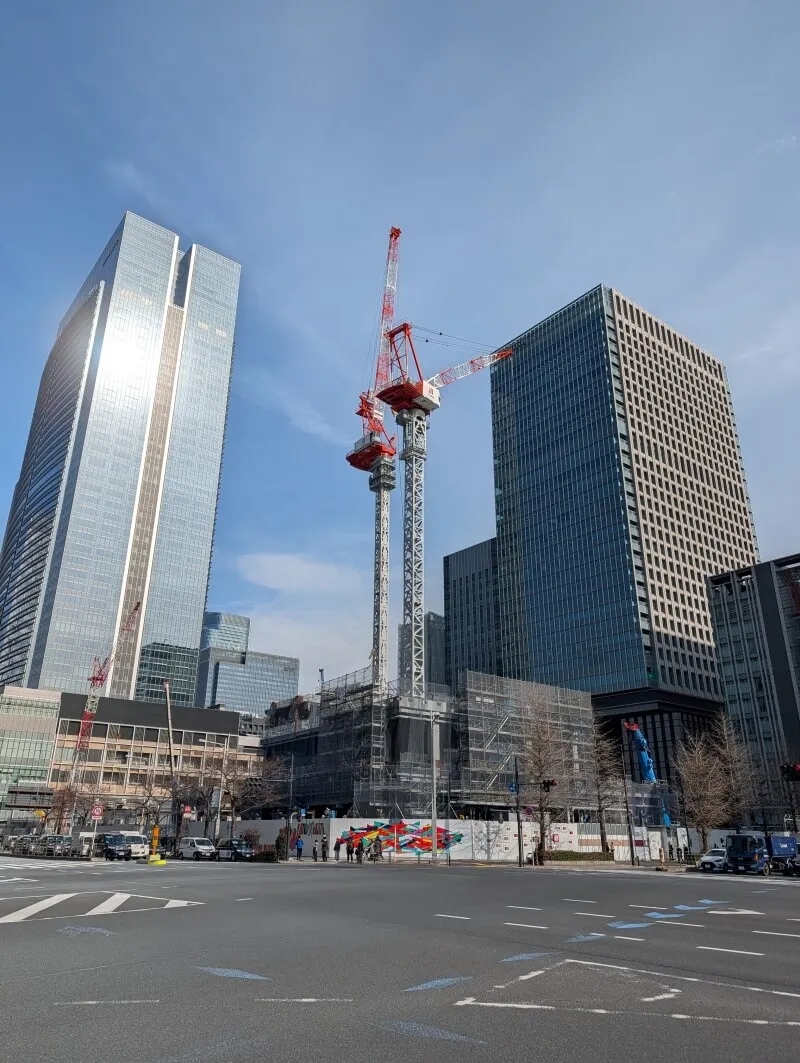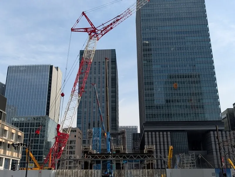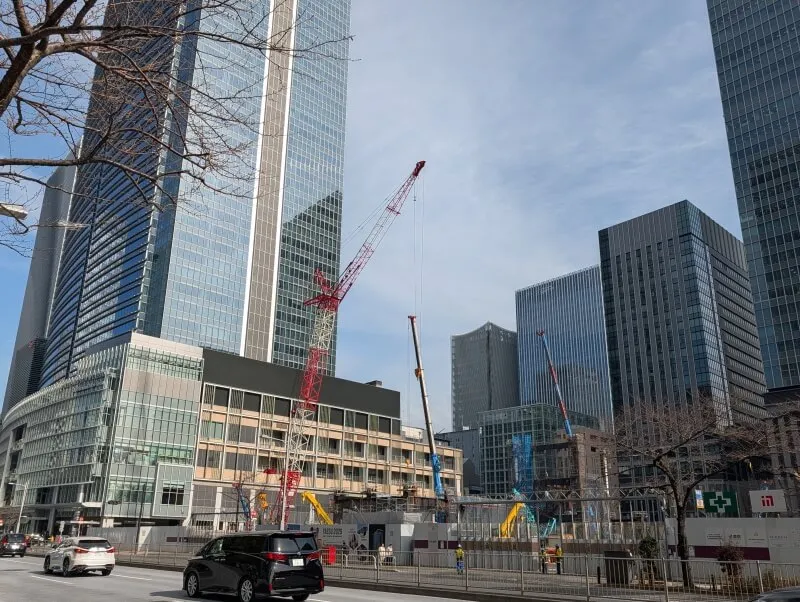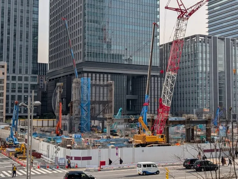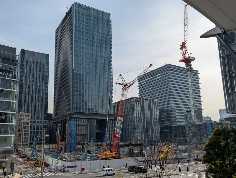 東京駅八重洲口のグランルーフから、再開発の敷地を見た様子です。