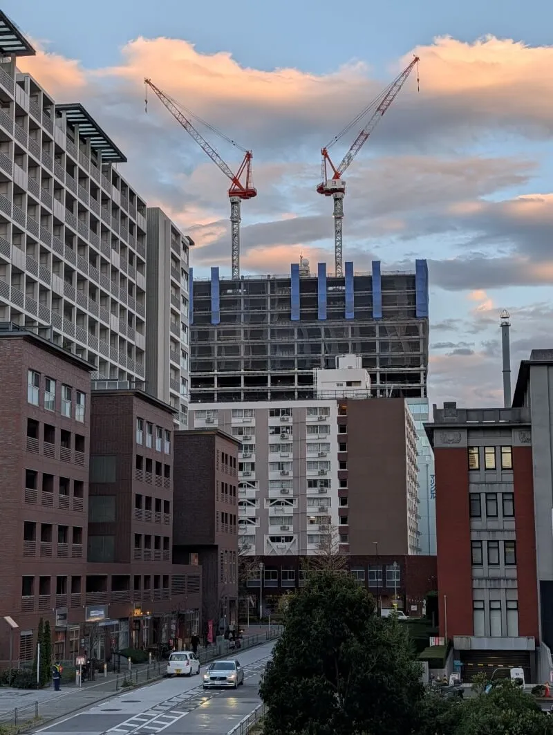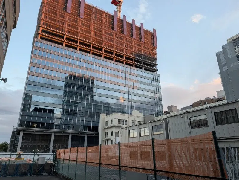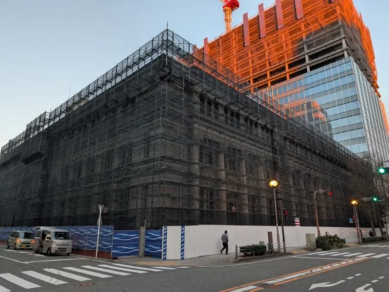 「東京芸術大学 横浜キャンパス (万国橋校舎)」傍から、施工中の建物を見た様子です。
