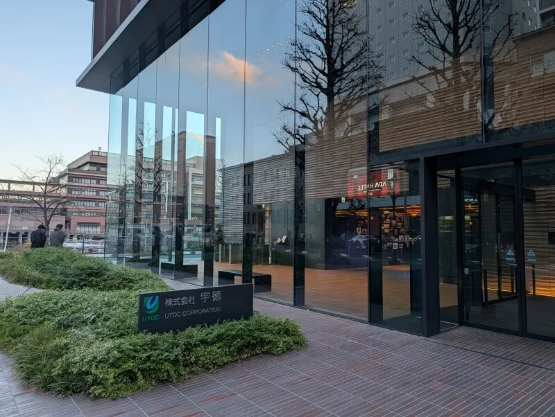 「(仮称)横浜市中区海岸通計画 B地区」として建て替えが行われた、「宇徳本社ビル」の出入口付近を万国橋通り沿いから見た様子です。