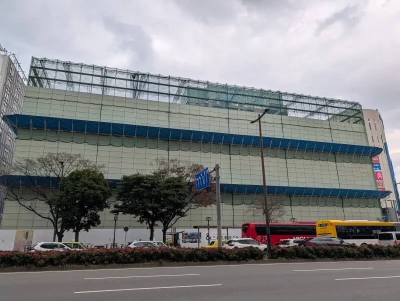 博多駅バスターミナル近くから、解体工事中の建物を見た様子です。