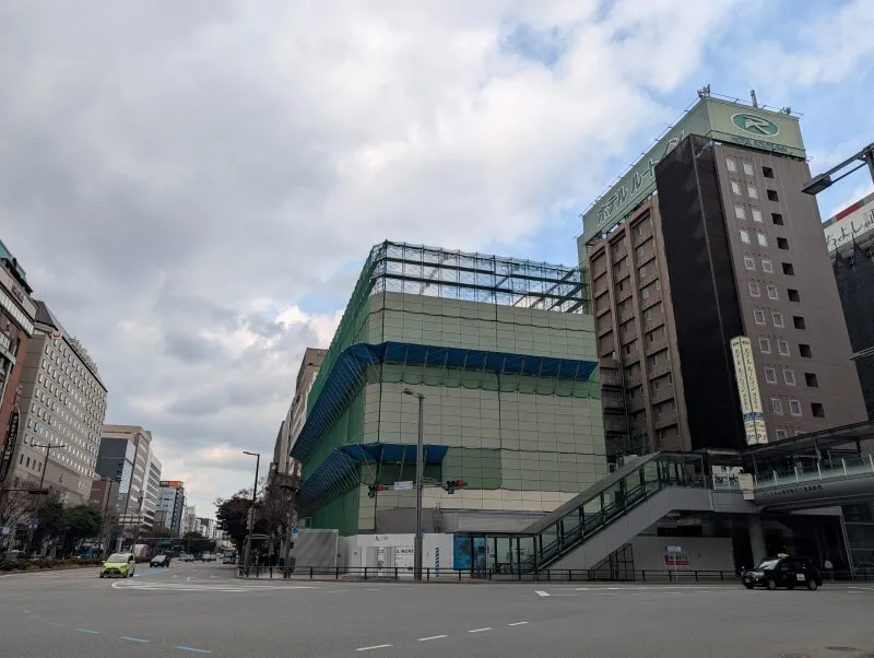 博多駅バスターミナル前交差点付近から、解体工事中の建物を見た様子です。