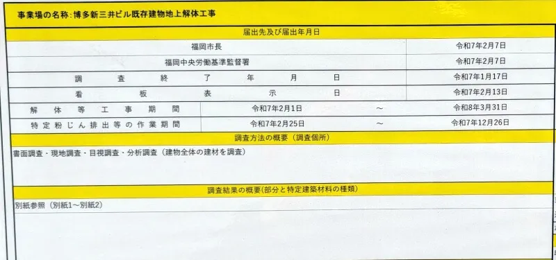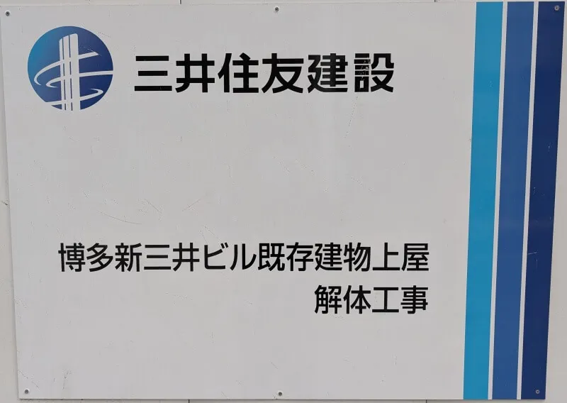 現地に掲示されていた、解体工事の案内です。三井住友建設が解体工事を担当されていました。
