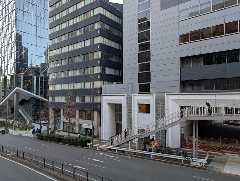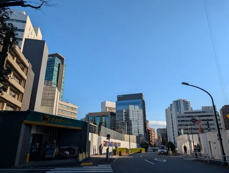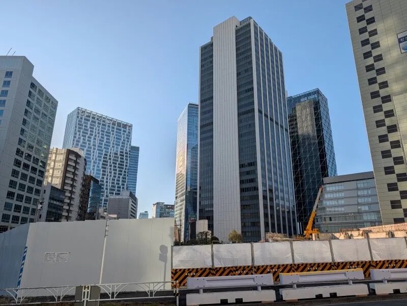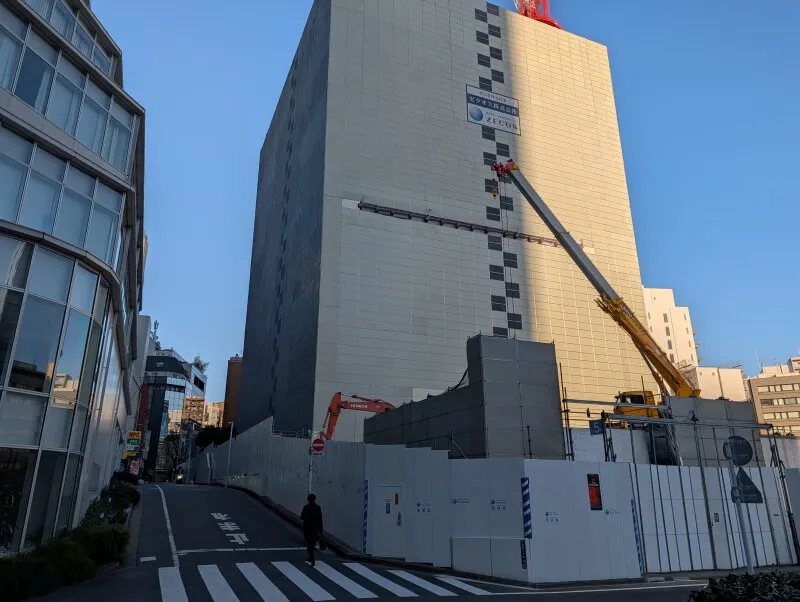 A街区が建つ予定の敷地の、「宮益坂プレイス渋谷」・「Daiwa渋谷宮益坂ビル」を見た様子です。