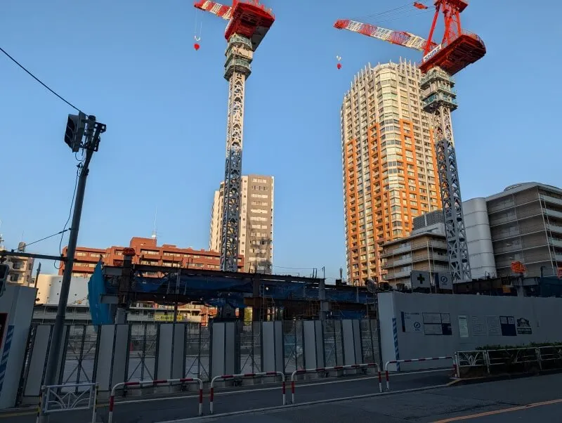 カメラを縦にして、建替え工事の建物を見た様子です。