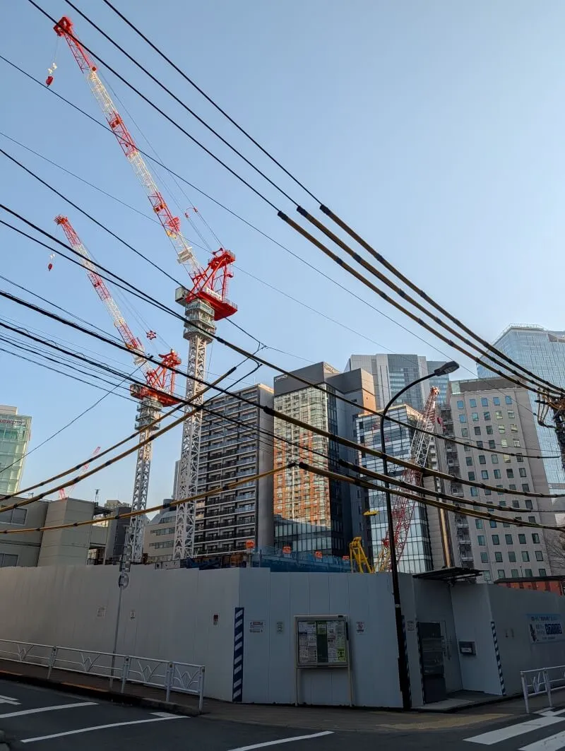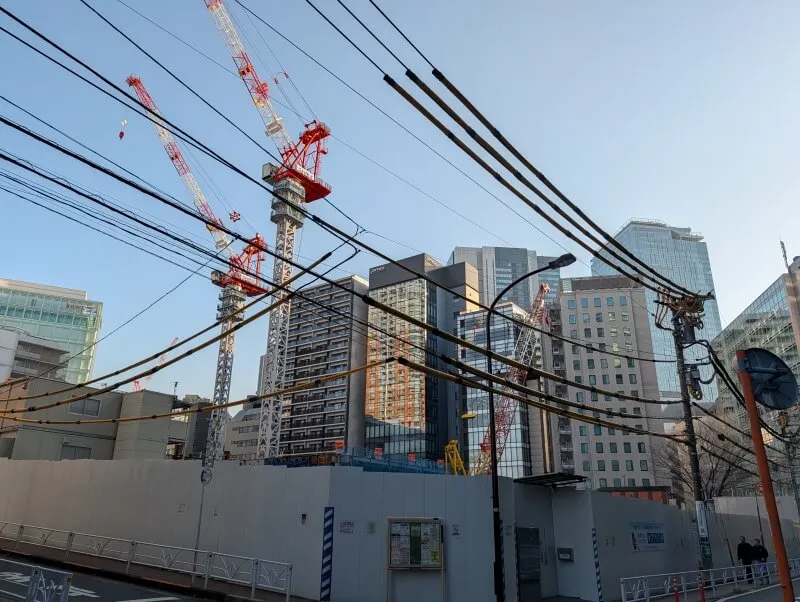 再開発の敷地南側の美竹通り沿いから、再開発の敷地を見た様子です。