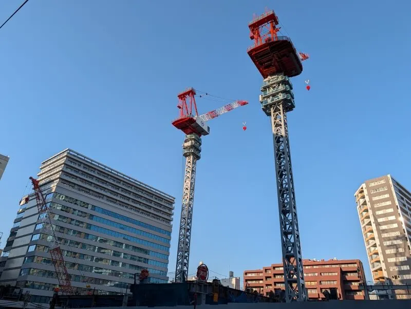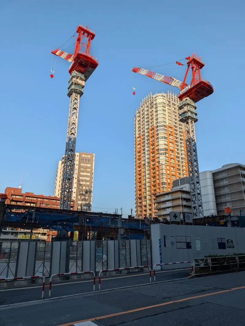 カメラを縦にして、タワークレーンを写真に収めた様子です。