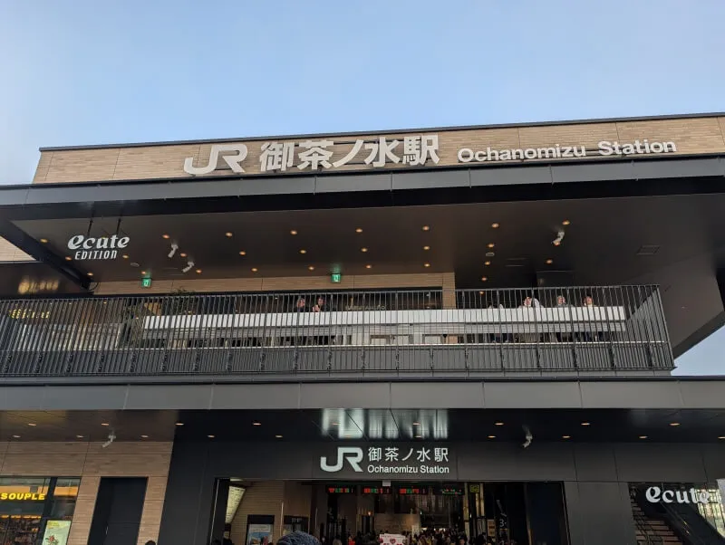 JR御茶ノ水駅の聖橋口側に来てみました。「エキュートエディション御茶ノ水」は、改札の隣の階段から、2階に登れるようになっていました。