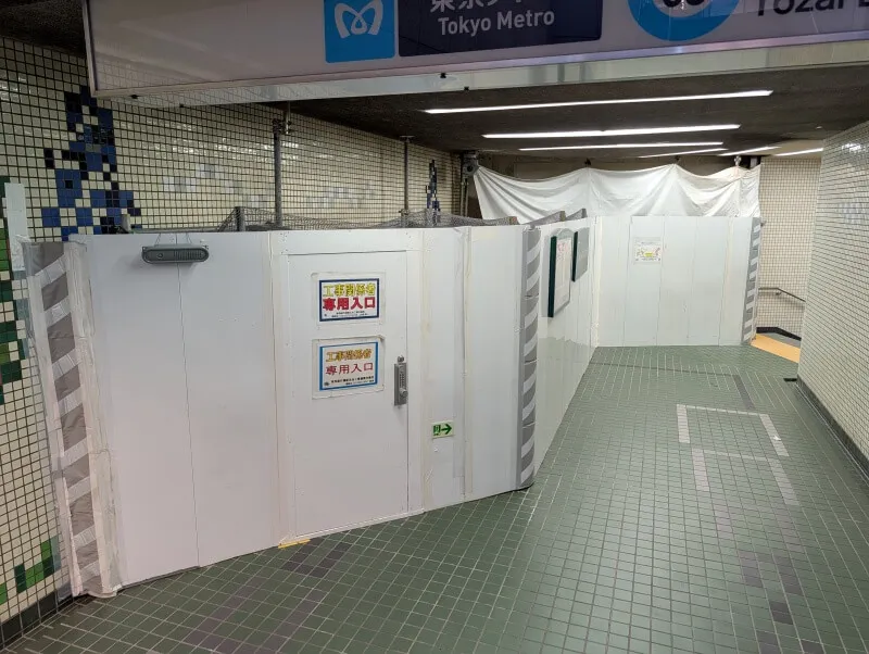 3b出入口付近から降りた様子です。工事用の白いフラットパネルが出ていましたが、こちらと「旧気象庁庁舎(25)構内整備工事」が関連しているのか、気になりました。