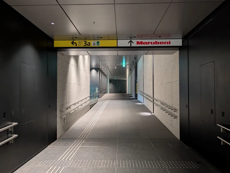 地下通路を進んで行った様子です。3a出入口と、丸紅東京本社の案内が掲示されていました。