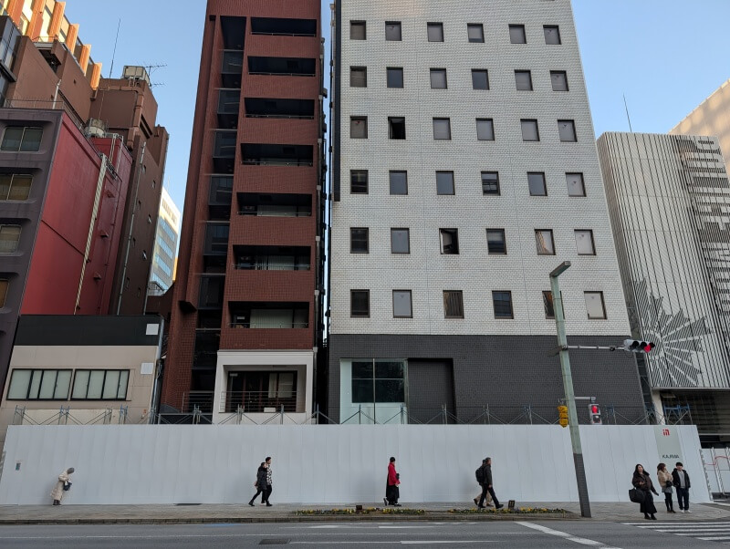 「東京スクエアガーデン」傍から、再開発の敷地を見た様子です。
