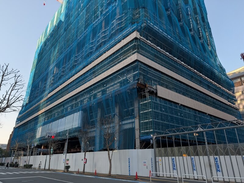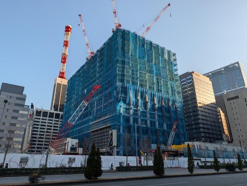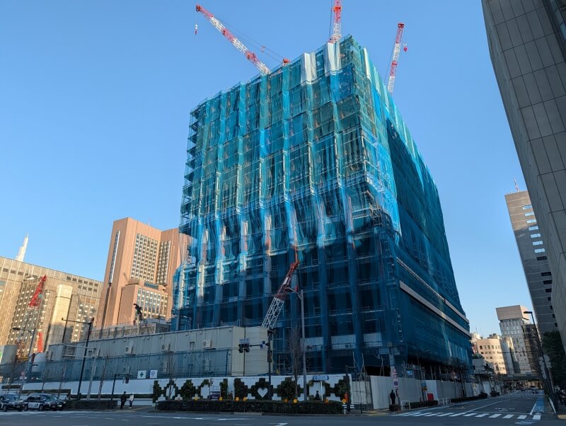内幸町交差点から、施行中の建物を見た様子です。