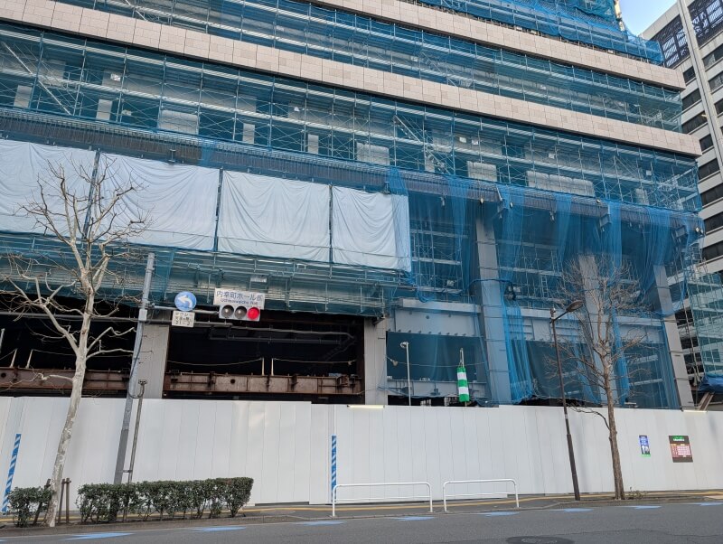 日比谷通り沿いを北側に移動して、施行中の建物を見た様子です。