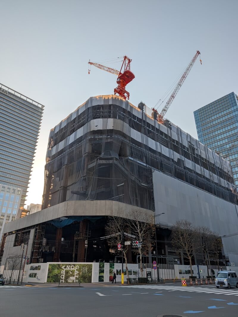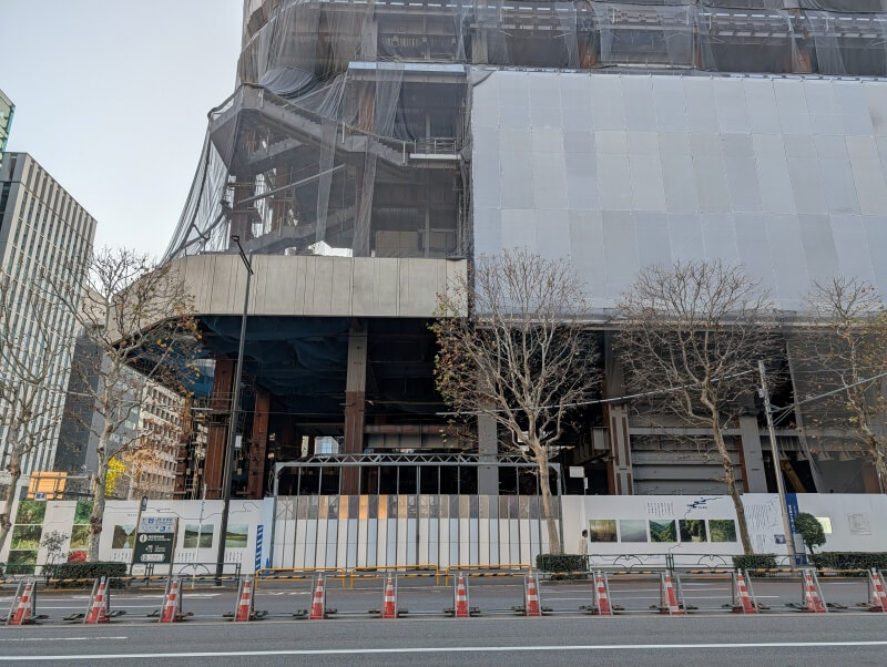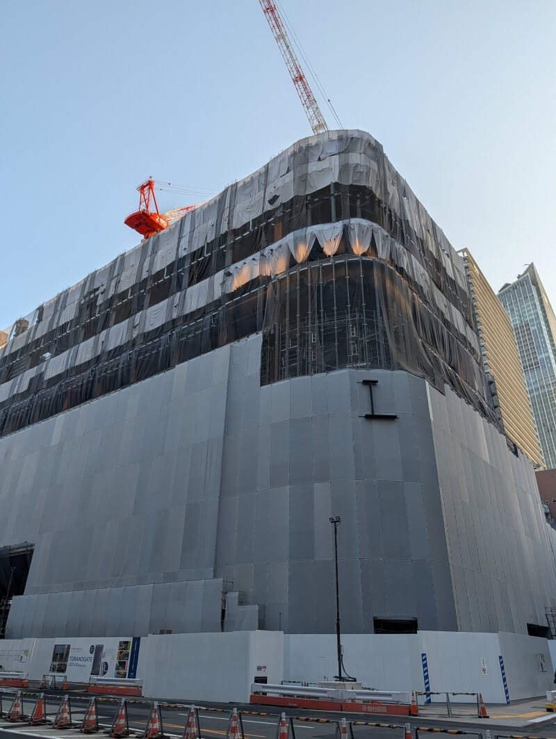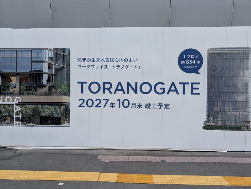 TORANOGATEは2027年10月末に竣工予定だという案内が、再開発の敷地の工事用のパネルに掲示されていました。