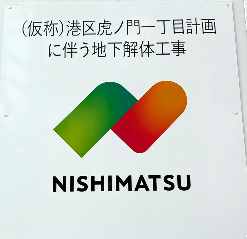 解体工事用のパネルに設置されていた、解体工事中の案内です。解体工事は西松建設が担当されています。