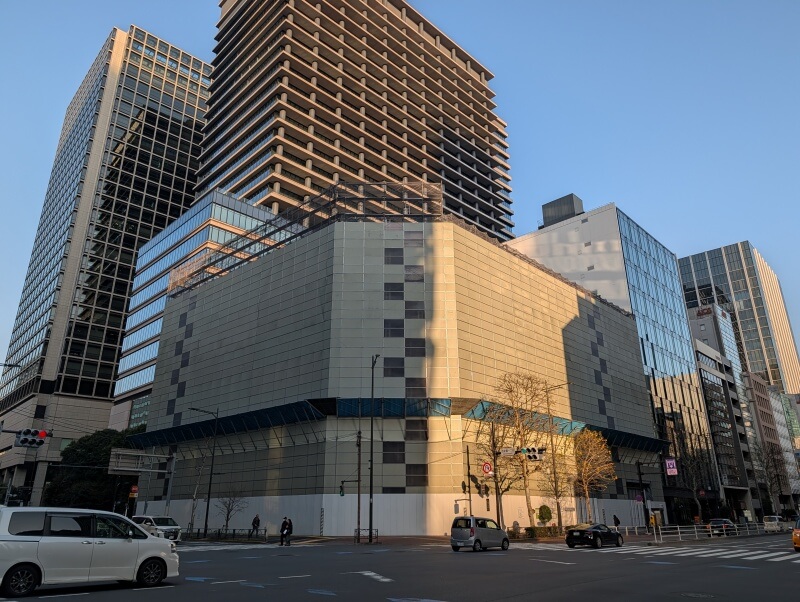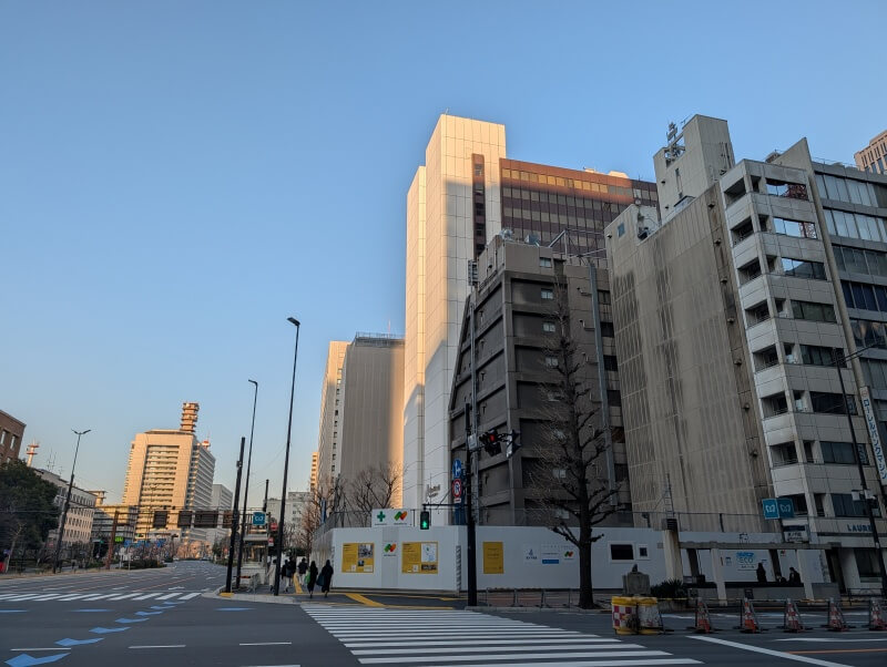 西新橋一丁目交差点から、再開発の敷地を見た様子です。