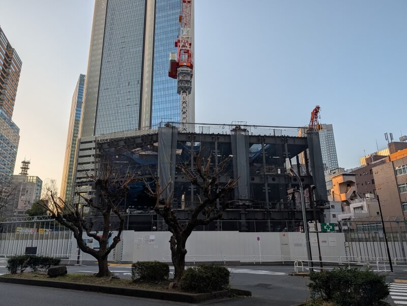 「赤坂インターシティAIR」近くに移動して、建替え工事中の敷地を見た様子です。