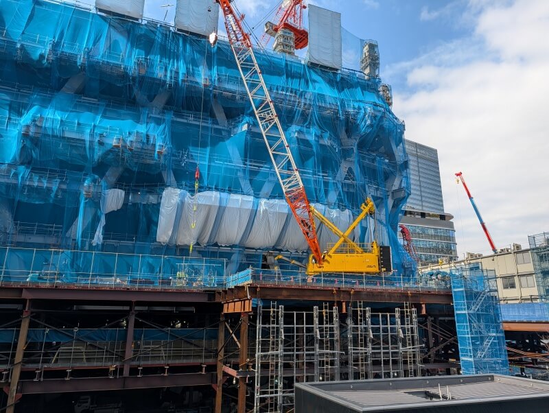 ズームして、施工中の建物の上部を見た様子です。
