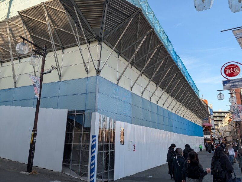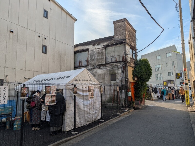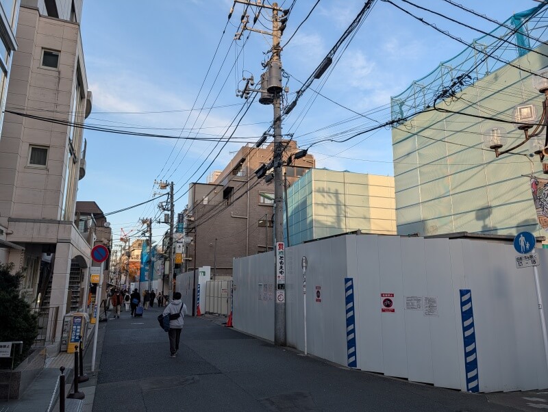 下北沢駅の駅舎沿いにある路地側から、解体工事中の建物を見た様子です。