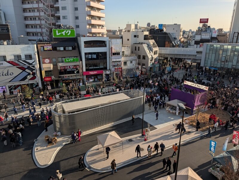 シモキタフロントから、下北沢駅駅前広場を見た様子です。